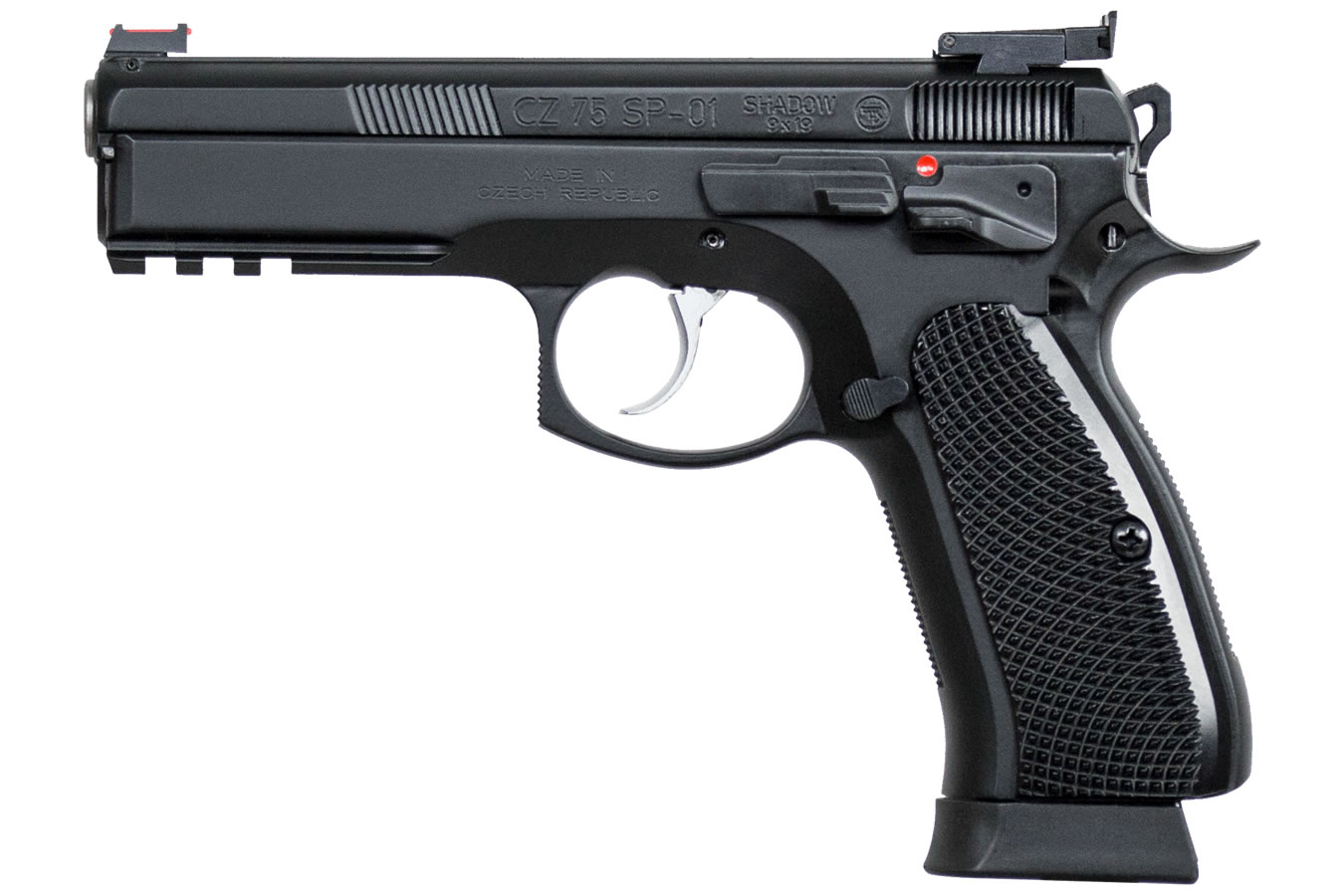 Order CZ 75 SP-01 Shadow Target II 9mm Custom online. The Target II is a competition-ready Pre-B style SP-01 Shadow, featuring a CZ Custom trigger job with the new short reset single-action trigger, fully-adjustable rear sight, fiber optic front sight, stainless steel guide rod, lighter springs for competition (11 lb recoil and 13 lb main springs), extended magazine release, drop-free magazines and checkered aluminum grips. Created by champion shooter Angus Hobdell’s CZ Custom Shop to have trigger pulls of 3.0-4.0 lbs in SA and 7.5-8.5 lbs in DA.