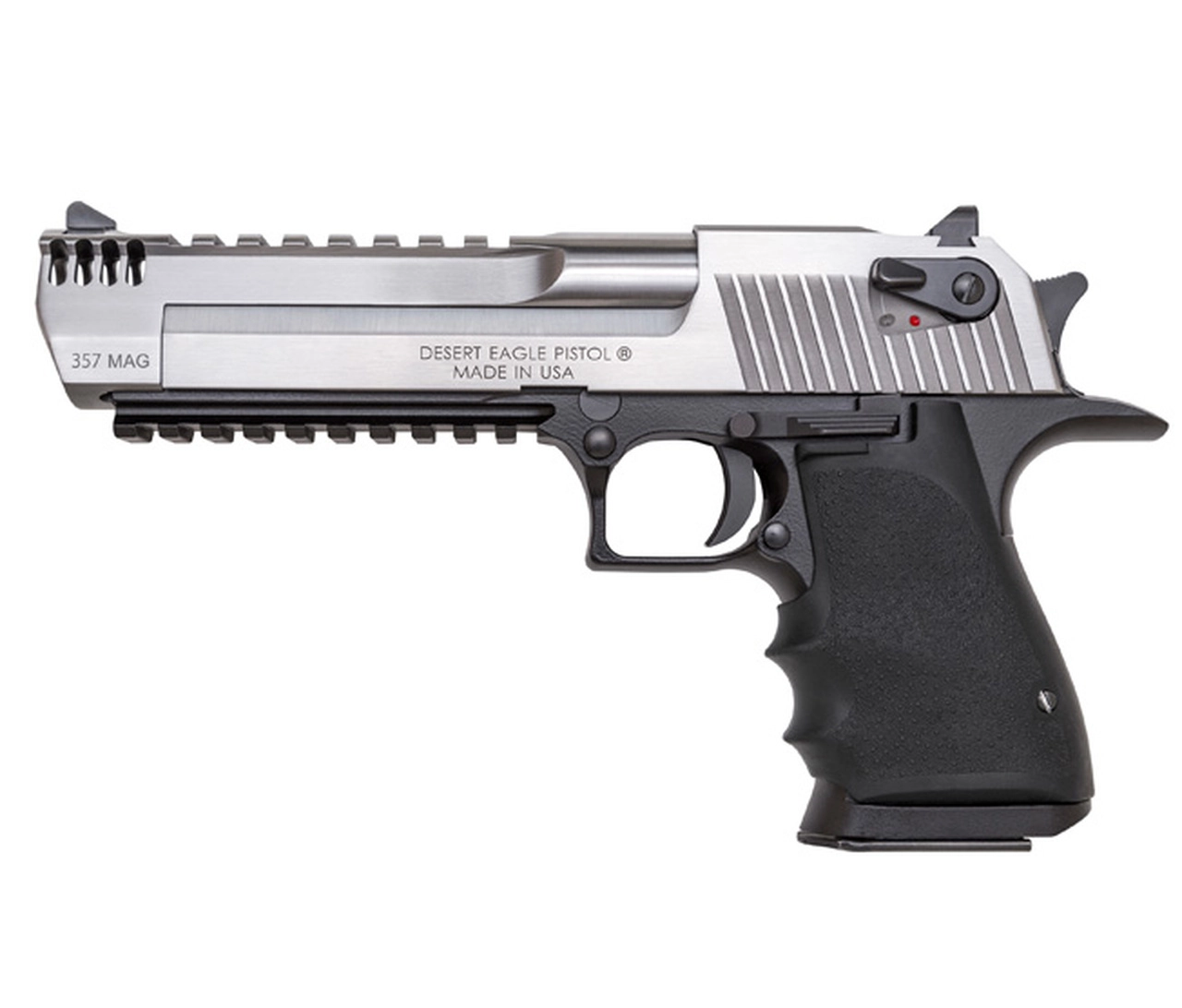 Buy Desert Eagle .357 Magnum, L6 online. DE357ASIMB. Desert Eagle® Mark XIX Pistol, .357 Magnum, Black Aluminum Frame;with Full Weaver Style Accessory Rail, Stainless Steel Slide and Barrel with Integral Muzzle Brake;(L6). $2,054.00. NEW 2017!!. 6″; barrel, 9 round. Desert Eagle .357 Magnum, L6 for sale.