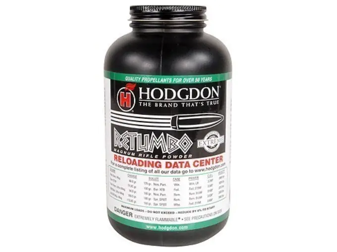Buy Hodgdon Retumbo Smokeless Gun Powder online. Hodgdon Powder offers the largest selection of quality smokeless propellants for any reloading application. Hodgdon RETUMBO is a magnum powder was designed expressly for the really large overbored cartridges such as the 7mm Remington Ultra Magnum, 300 Remington Ultra Magnum, 30-378 Weatherby Magnum, etc. Buy Hodgdon Retumbo Smokeless Gun Powderonline.