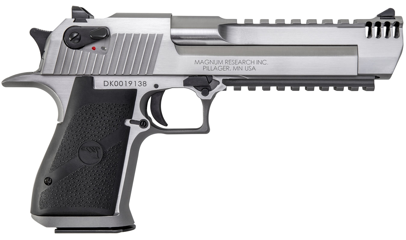 Buy Magnum Research Desert Eagle .44 Mag Stainless with Integral Muzzle Brake online. After the successful launch of the stainless steel .50 AE Mark XIX pistol, Magnum Research is proud to introduce the highly anticipated .44 Mag Stainless Steel Desert Eagle. These pistols are 100% made in the USA, and include an all stainless steel frame, slide, barrel and rail, and is accented with attractive black appointments.