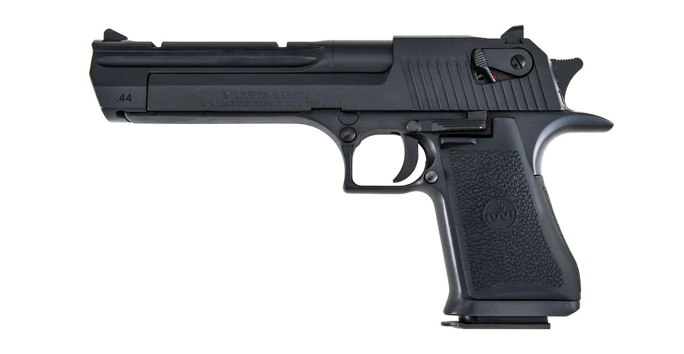 Order Desert Eagle 44 Magnum Black Pistol online. The Desert Eagle® Pistol has become a pop-culture icon after 25 years of being decorated, altered, and re-imagined in many movies, television series, and video games. You may personalize your Desert Eagle Pistol with a range of outstanding finishes to give this classic handgun your own unique touch. Models allowed for use in California include a Weaver-style auxiliary rail with two slots.