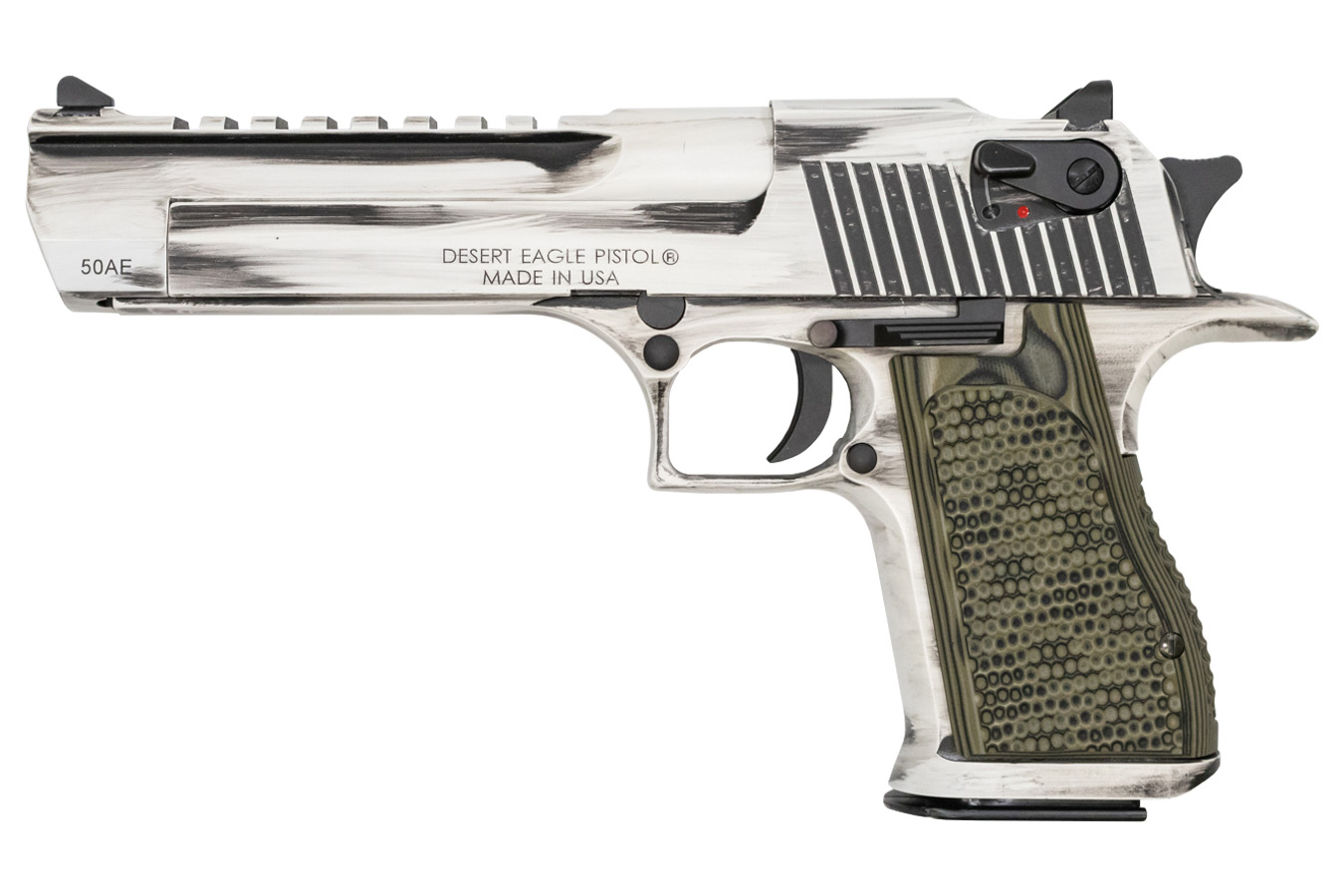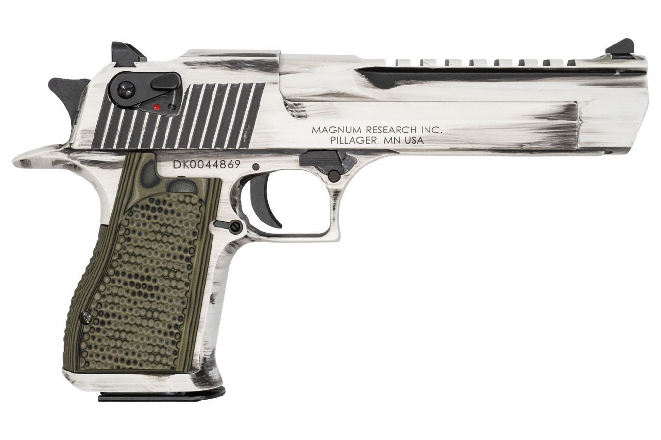 Order Magnum Research Desert Eagle 50 A.E. Apocalyptic Mark XIX online. If you ever find yourself besieged by Zombies or other otherworldly forces, the new Magnum Research Mark XIX Apocalyptic Desert Eagle may be your last hope. Even the most ferocious creatures and terrible immortals would be intimidated by the new CerakoteTM distressed matte white finish.