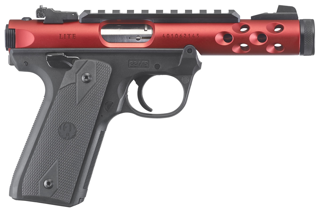 Order Ruger Mark IV 22/45 Lite 22LR Red Anodized with Threaded Barrel online. For 2018, the popular Mark IVTM 22/45TM Lite now comes in a beautiful red anodized finish. A lightweight, vented, aerospace-grade aluminum receiver and a comfortable, precision-molded polymer grip frame are also included in the Lite variant. A non-threaded barrel is now available for this model. Find yours right now!.